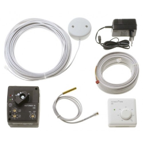 Setul AUTOMIX10 realizează un reglaj continuu şi proporţional. Pe baza informaţiilor furnizate de senzorii de temperatură va fi reglată temperatura AT în funcţie de temperatura exterioară. Setul AUTOMIX10 este dotat cu funcţii de limitare a temperaturii minime, maxime a agentului termic şi protecţie antiîngheţ. Cablajele speciale incluse în set elimină riscul unor conectări greşite şi asigură o instalare simplă şi rapidă.