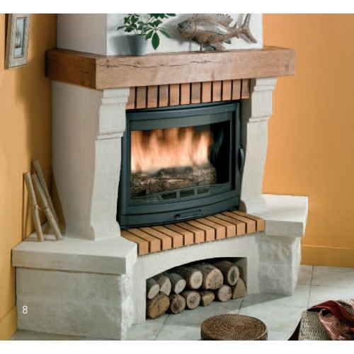 Focar fontă cu geam curb pentru o mai buna vedere a focului.