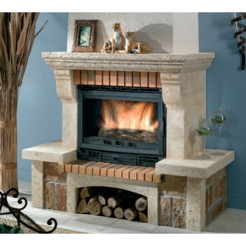Focar fontă cu geam curb pentru o mai buna vedere a focului.