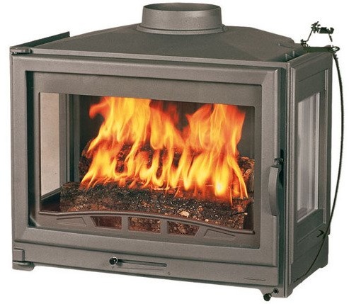 Focar fontă cu geam pe ambele laterale pentru o mai buna vedere a focului.