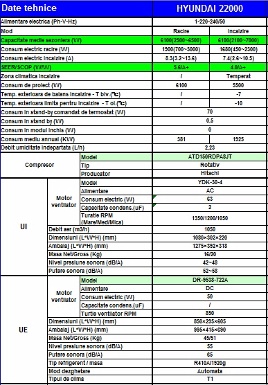 Aparat de aer conditionat inverter HYUNDAI 22000 BTU – model 2015