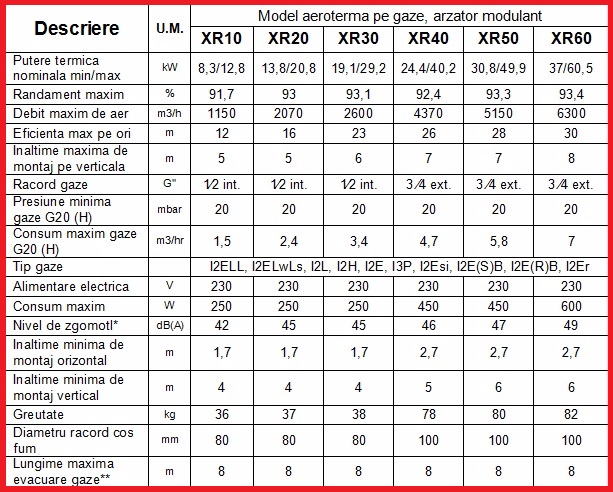 Dimensiunile si montajul pentru aeroterma cu tiraj fortat pe gaze naturale
