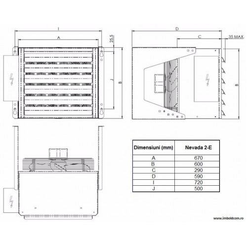 Dimensiuni aeroterma electrica industriala nevada 2E -15 kw
