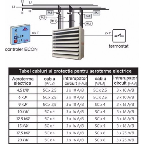 Caracteristici constructive aeroterma electrica industriala nevada 2E -15 kw :