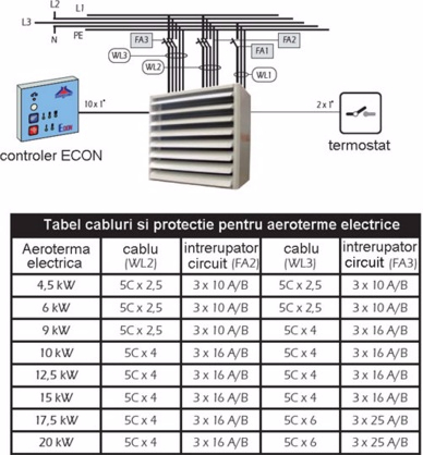Date tehnice aeroterma electrica industriala nevada 2E -15 kw: