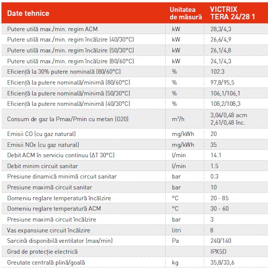 Centralele VICTRIX TERA sunt incadrate in clasa 6,cea mai ecologica sub aspectul emisiilor de NOx,conform Standardelor Europene.